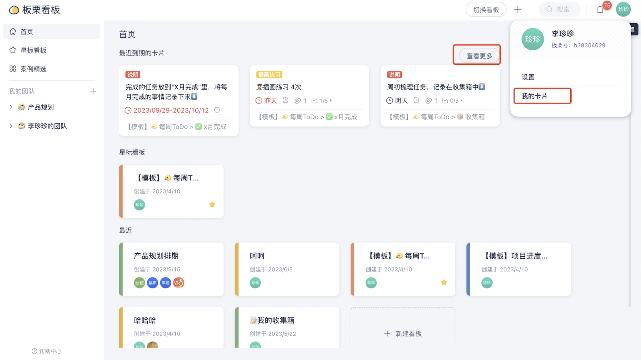 注:如果在某看板里没有与自己相关的任务,则不会显示该看板列表。