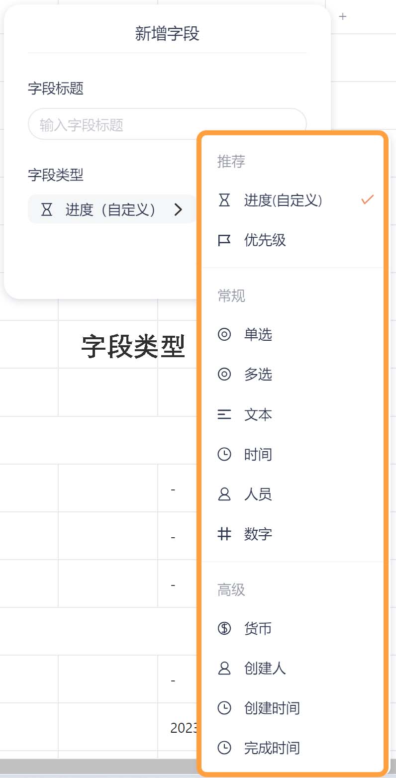 在表格视图中,可以根据具体的项目情况「新建字段」,用于表示项目的其他数据信息,以便于团队成员更高效的管理与协作。
