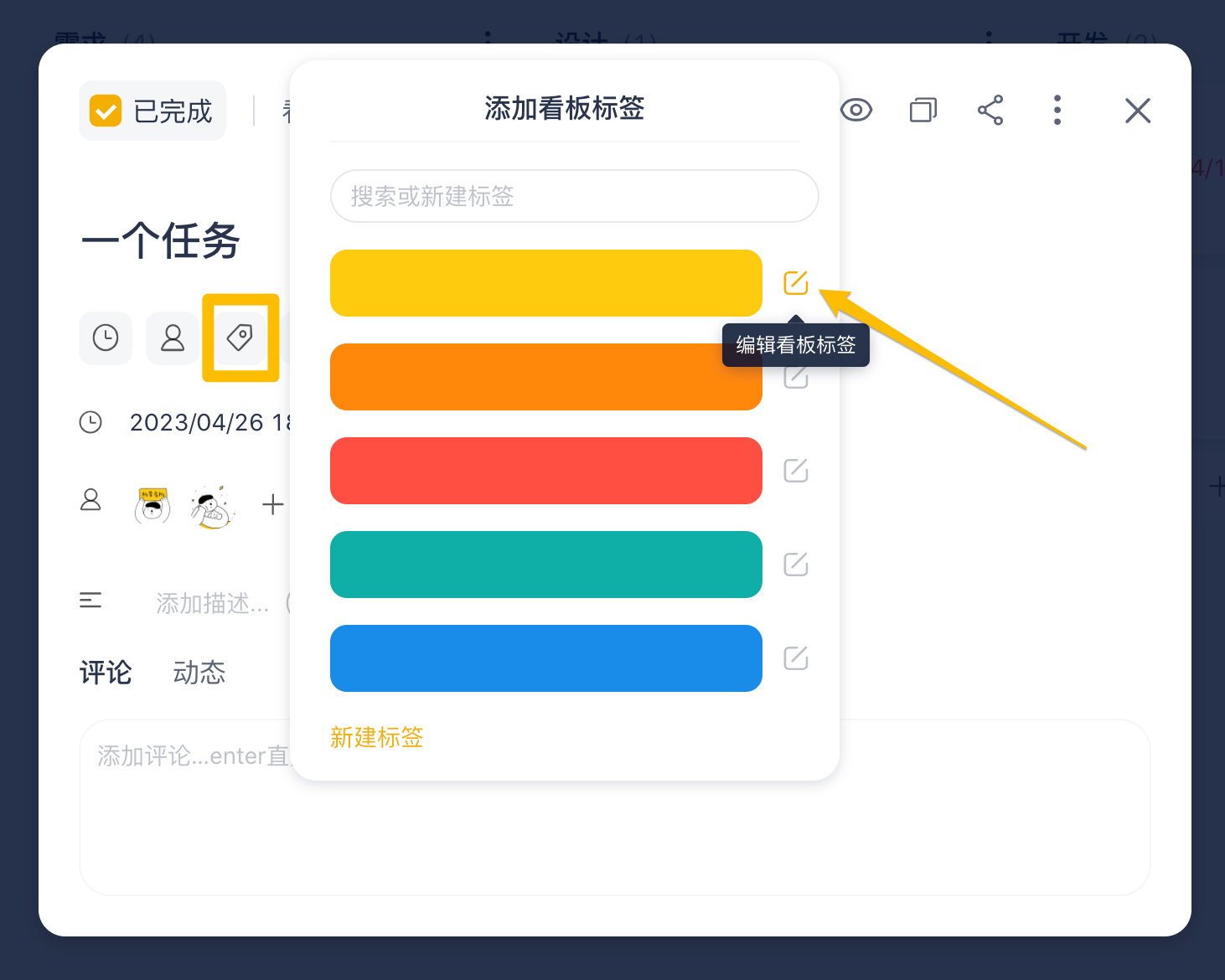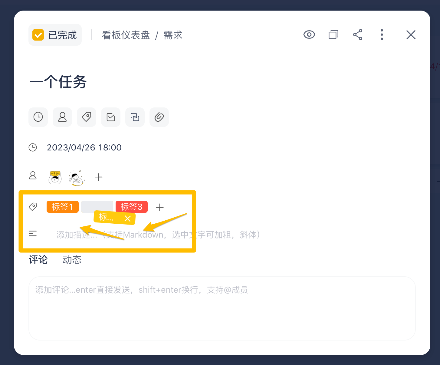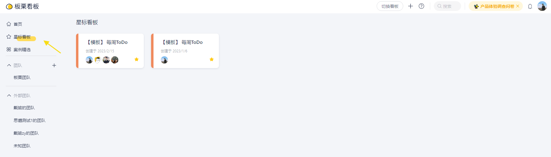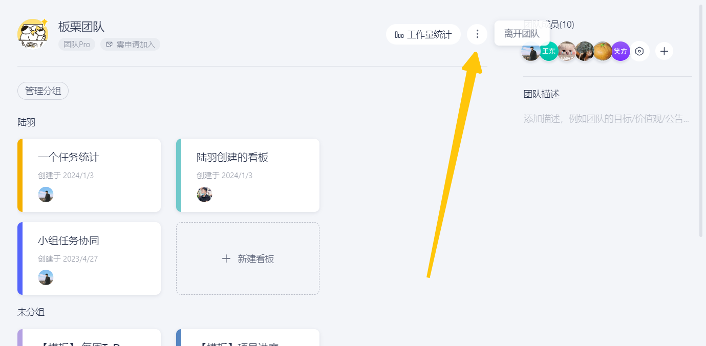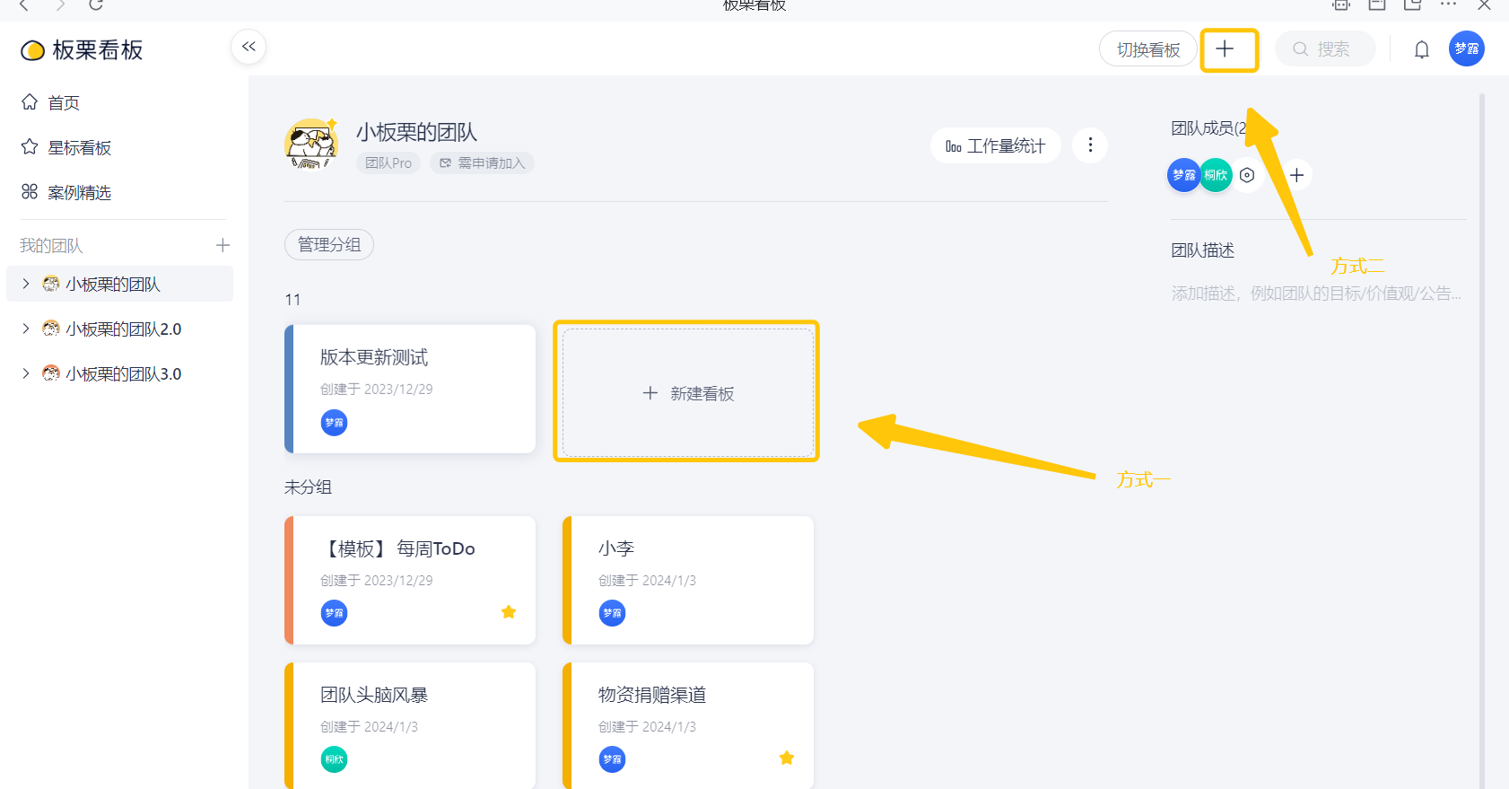 点击看板右侧「团队描述」处的灰色字体,即可对其进行修改。