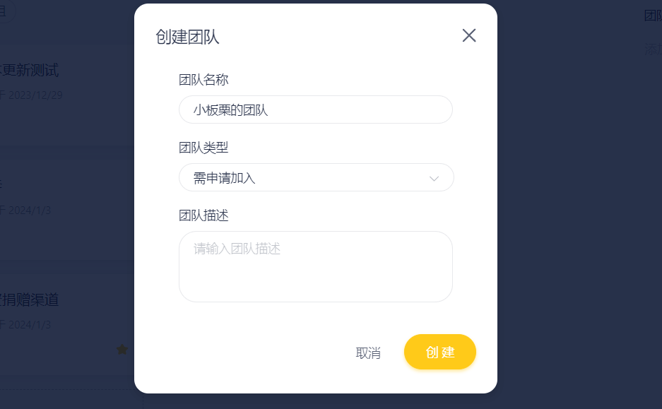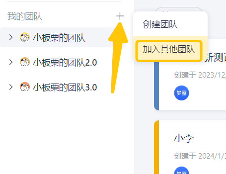 创建团队是进行协作的第一步。在板栗看板首页左侧,点击“团队”旁的 + 号按钮,选择“创建团队”即可新建团队。