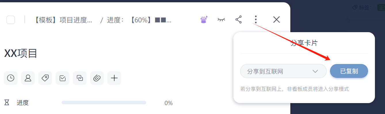 可通过复制卡片链接,将卡片分享给他人。对方点击链接可直接跳转到看板中的卡片详情页里。