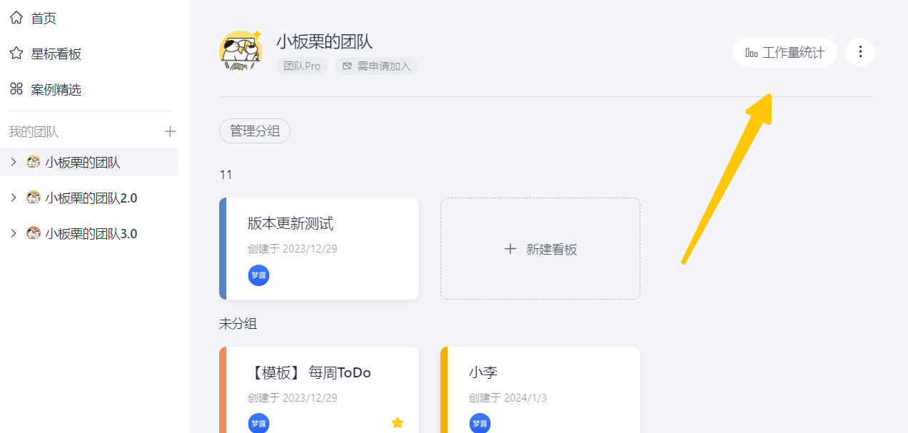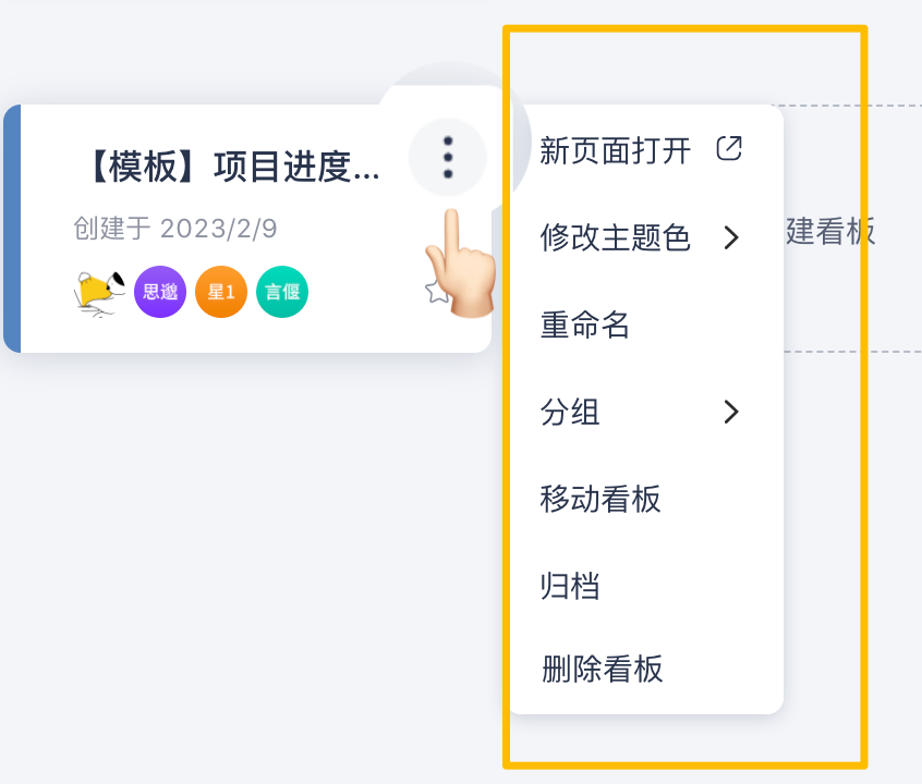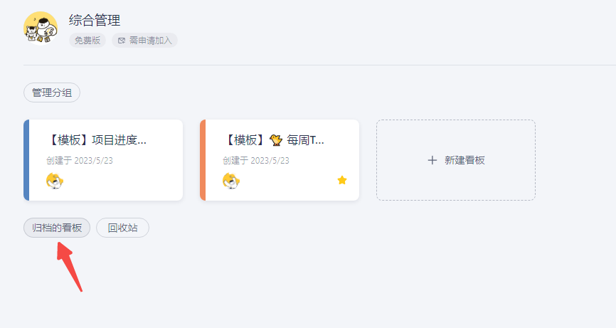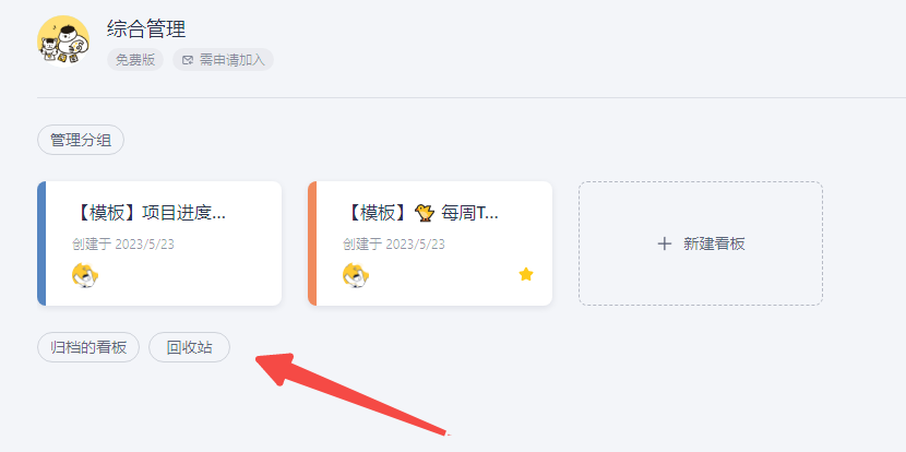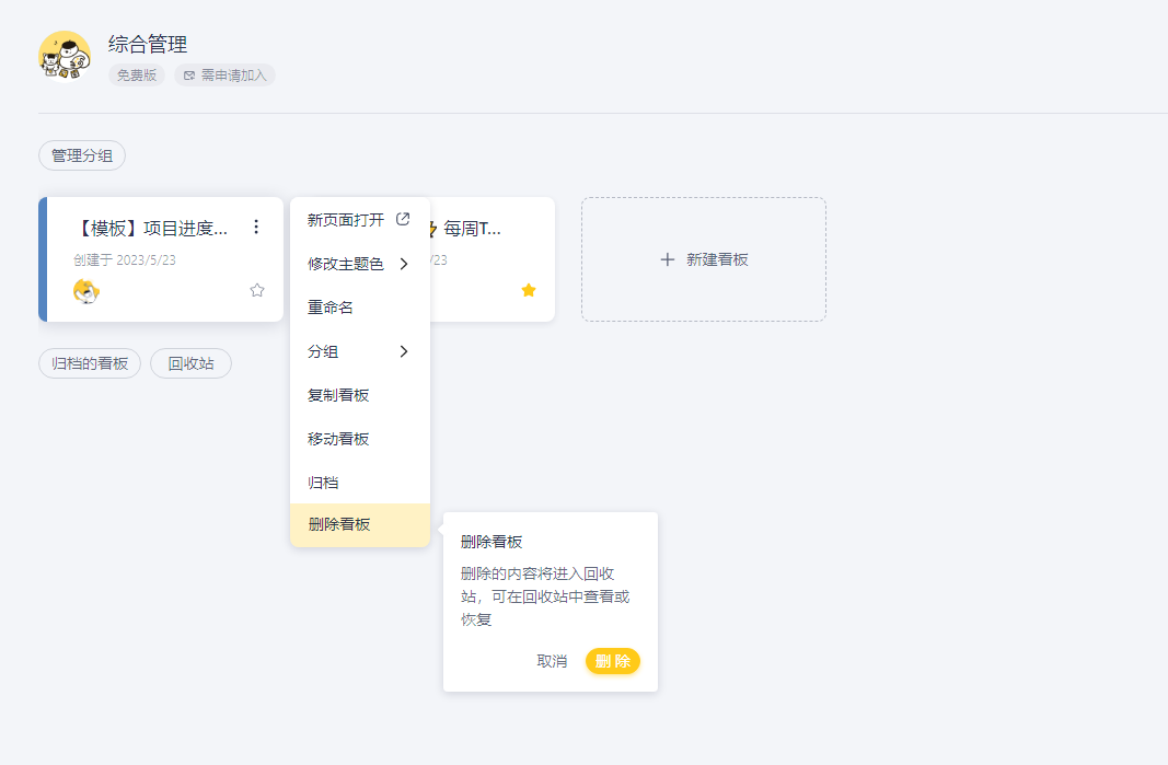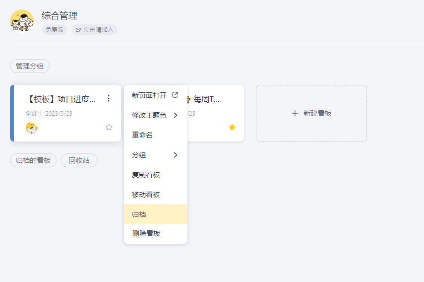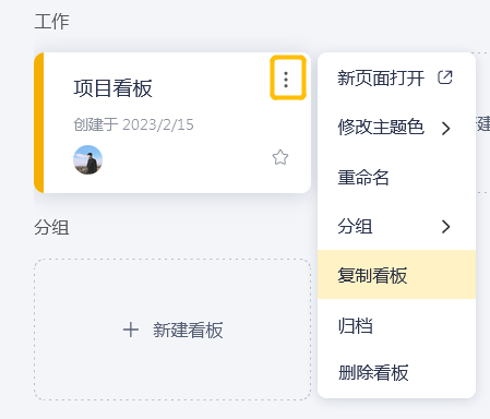 例如,有的看板与工作相关,可以归类到同一个分组,而有的则与生活相关,可以归类至另一个分组,分类管理可以使团队任务的呈现更加清晰明了。