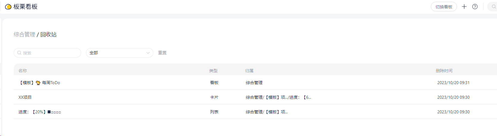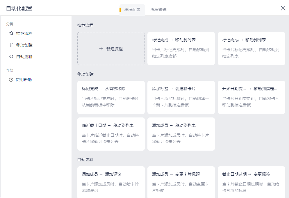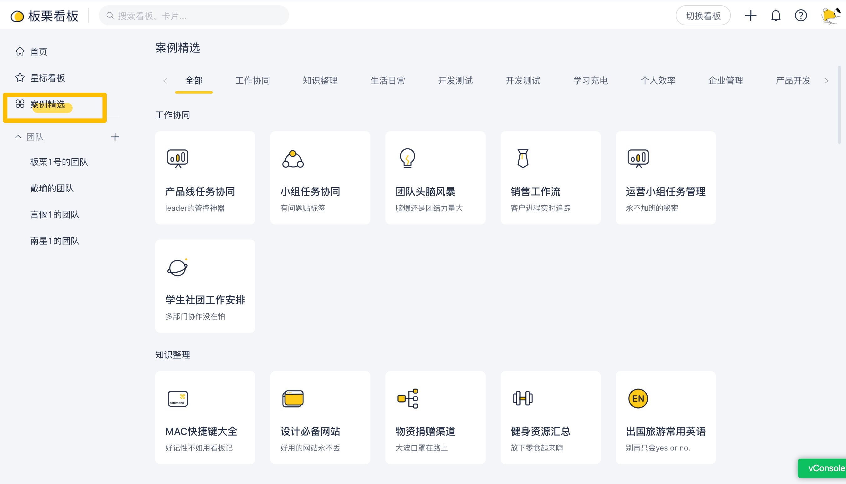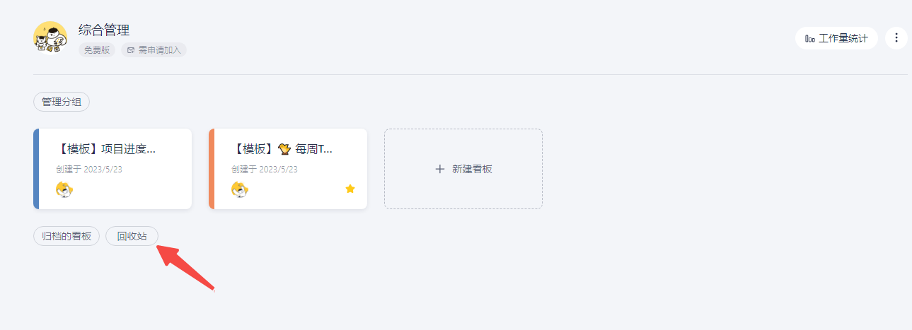 例如,有的看板与工作相关,可以归类到同一个分组,而有的则与生活相关,可以归类至另一个分组,分类管理可以使团队任务的呈现更加清晰明了。