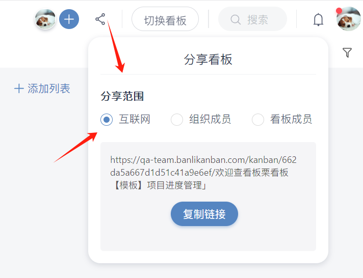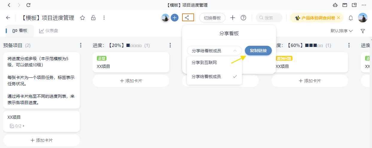 - 如想让看板外的其他人也能看到卡片内容,请看板管理员开启看板公开分享。