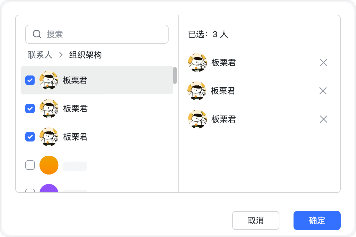 注意:完成离职交接后,离职人员将被清除出所有团队。该成员再次进入板栗看板后,会创建一个全新的账号。请谨慎操作。