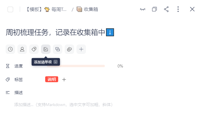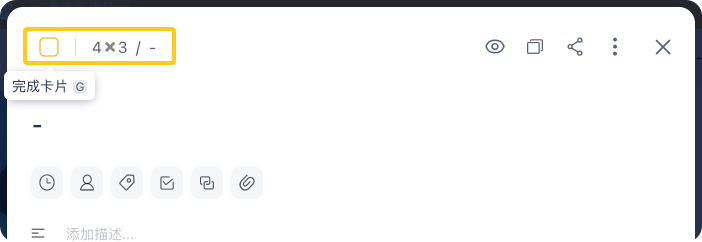勾选卡片详情页左上角的小方框,可使卡片进入“已完成”状态。