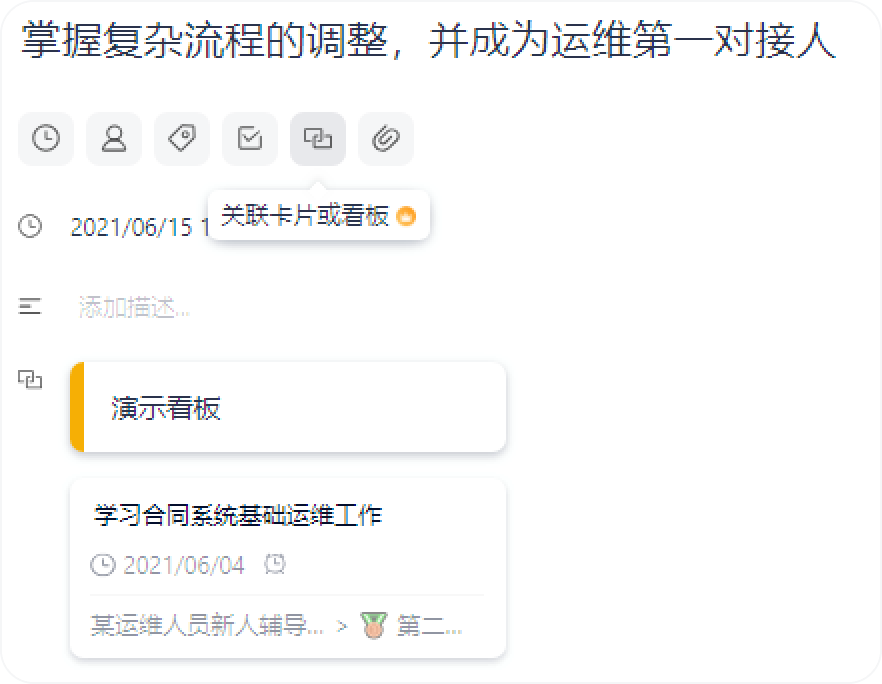 可以让卡片与看板,或卡片与卡片之间进行关联,方便彼此间快速跳转