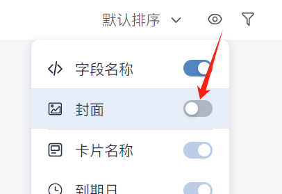 通过选择看板界面右上角的“眼睛按钮”,打开设置界面,就可以选择令哪些字段在卡片封面上显示,哪些字段不在卡片封面上显示。
