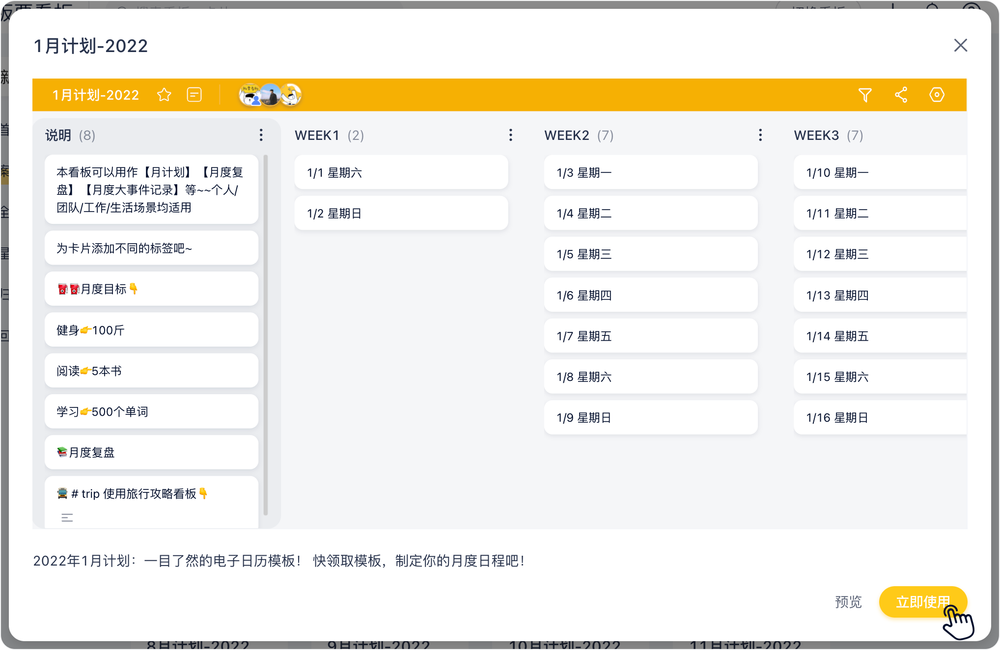 挑选任一模板,点击「立即使用」即可保存该模板。