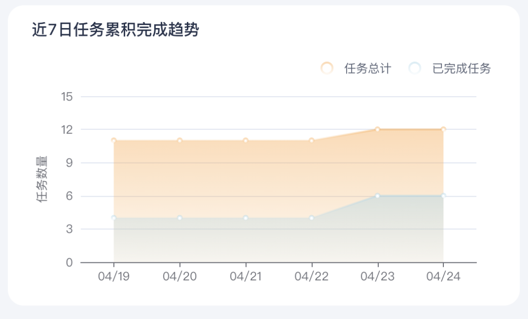 包括:已完成、进行中、即将到期和已逾期的任务数