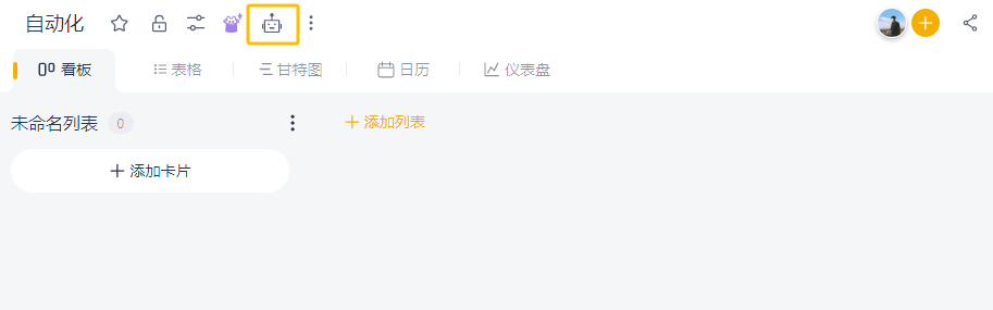 - 自动化 2.0 取消了原看板设置自动化入口,将新入口设置于看板主页顶部。点击机器人图标,即可进入自动化 2.0 的配置主界面