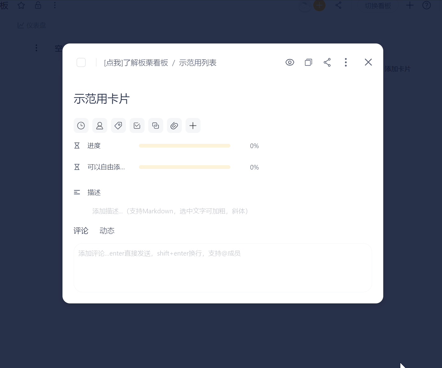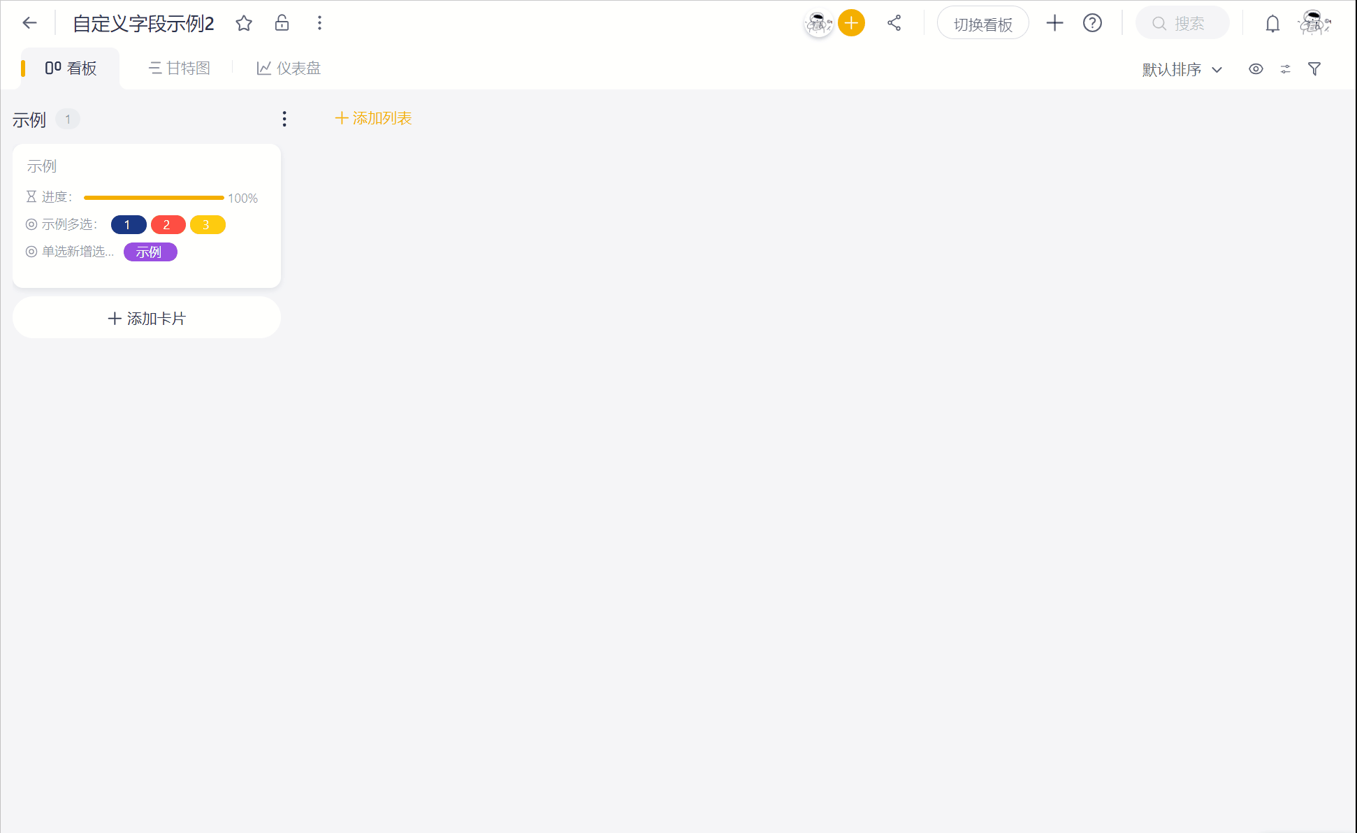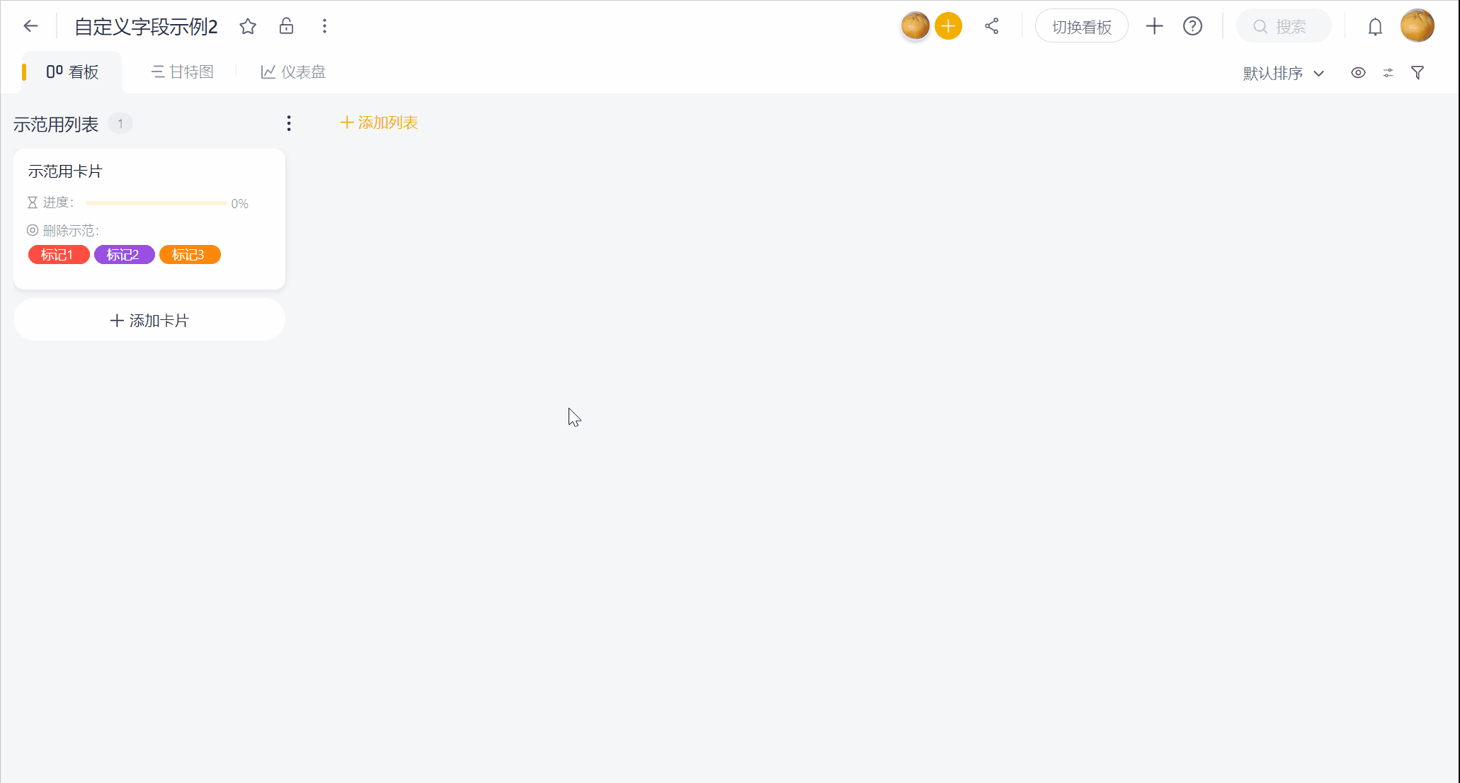 注:一张看板中最多新添加 30条自定义字段,自定义字段对整个看板通用。