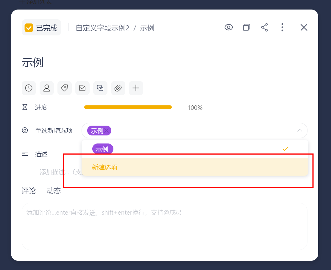 同时支持自定义命名字段的名称,用户可以根据自身的工作流程和信息管理需求,灵活地组织和设计字段,创造出标准化任务卡片范式。