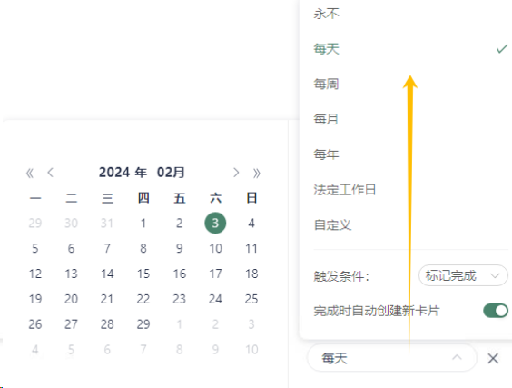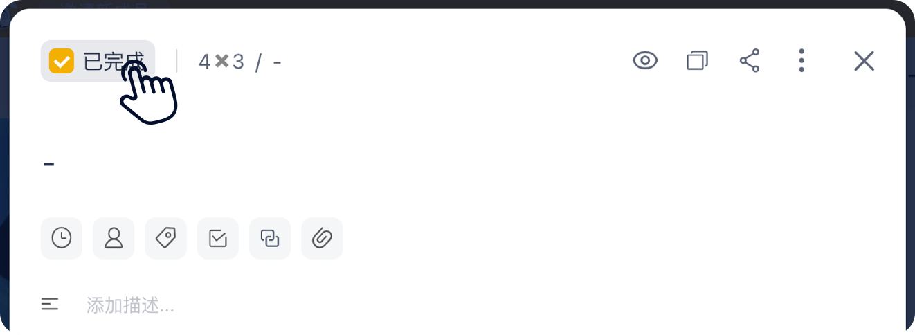 勾选卡片详情页左上角的小方框,可使卡片进入“已完成”状态。