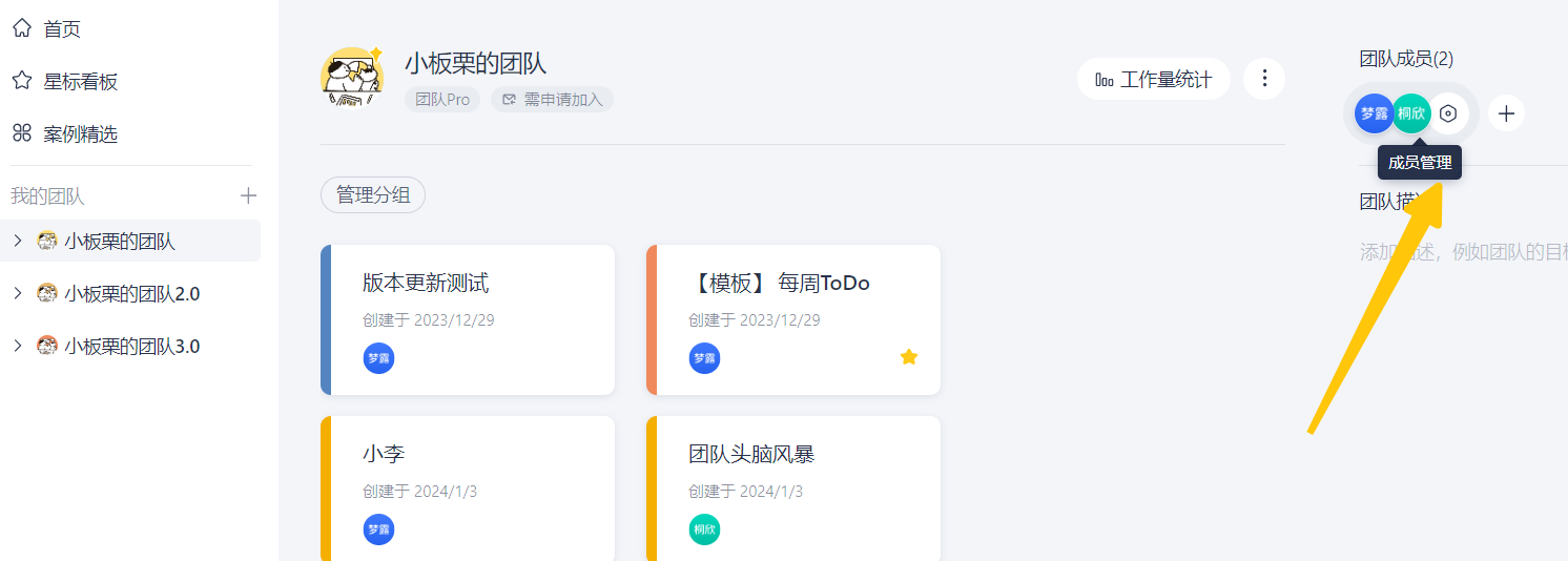 成员:正式加入团队的成员,可以查看和操作团队中全部看板。