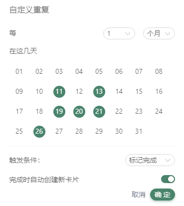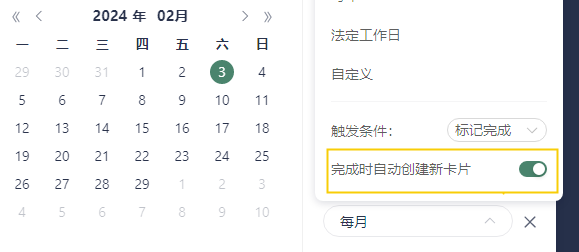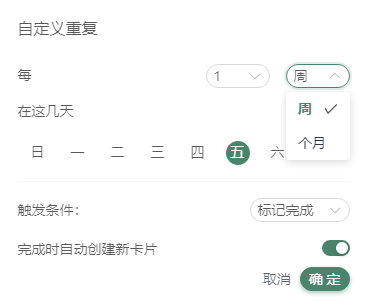 - 当进度填写为 100% 时,卡片会自动变成“已完成”状态