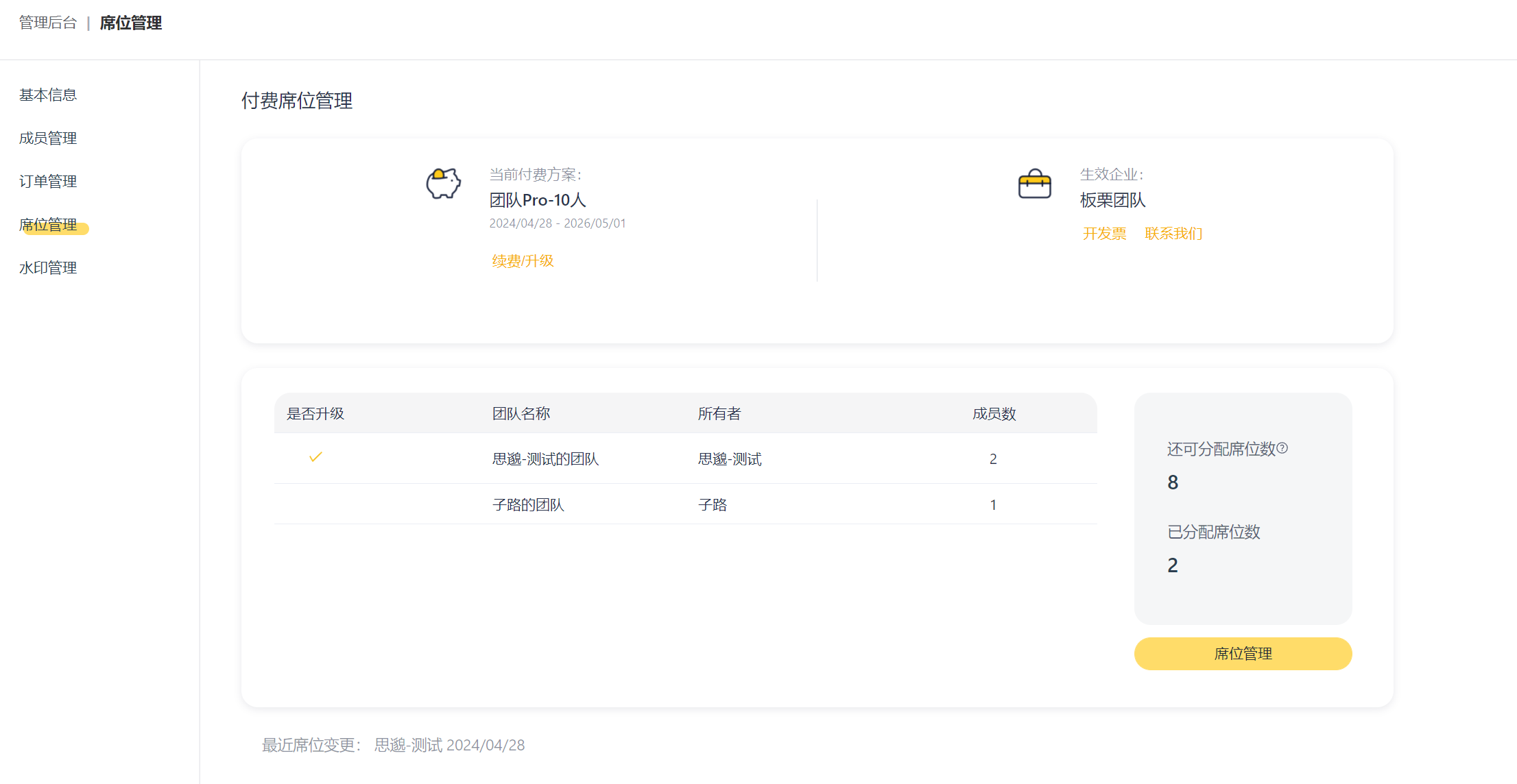 购买后可在此处进行席位的分配,分配后付费功能才会生效。