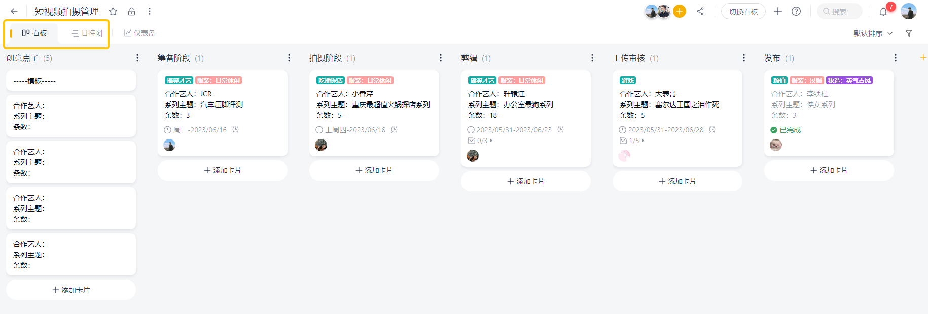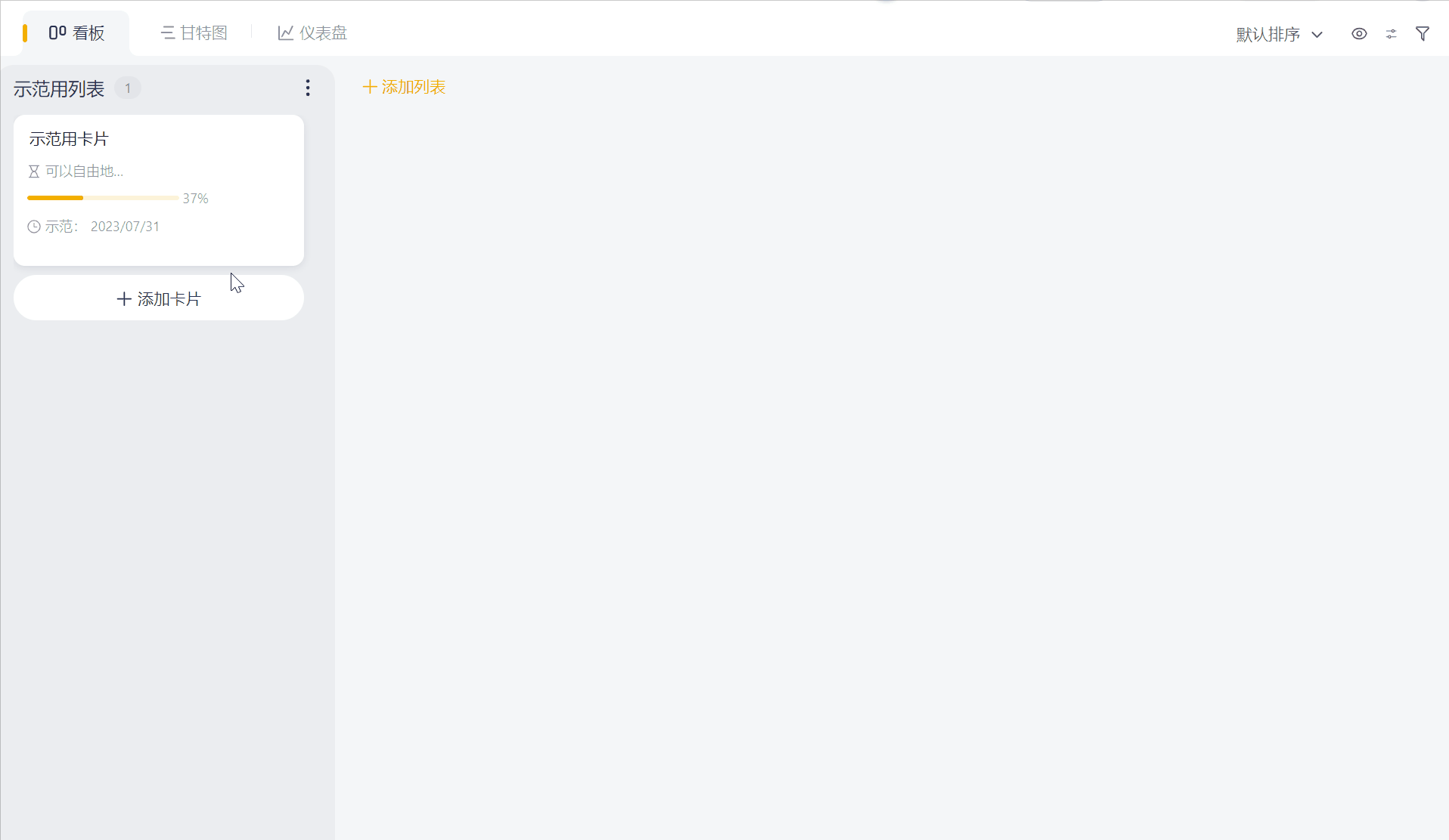 板栗看板能将从“看板视图”,切换到“甘特视图”,所有设置的列表、卡片、清单都能直接同步转化,帮助团队从更多元的视野去关注项目计划与进展。