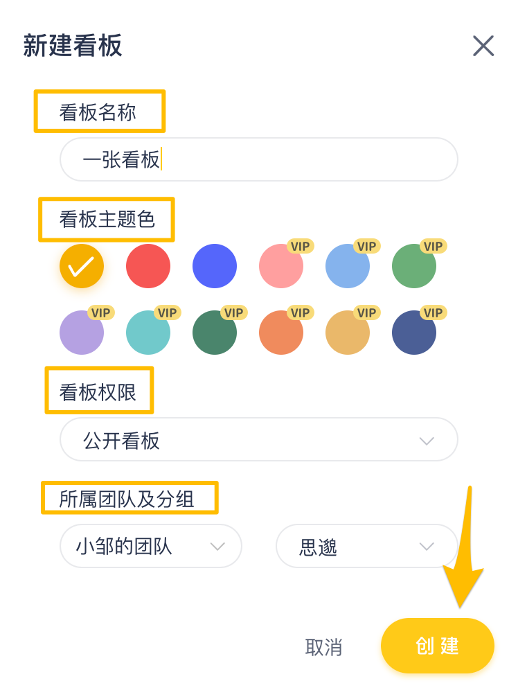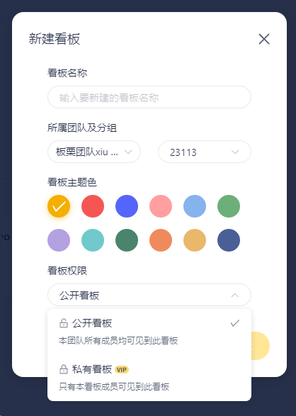 我们可以在团队中创建分组来对看板进行分类管理,团队成员可以看见所有分组。