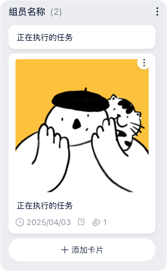 字段是卡片承载各种信息的载体(常见字段如:时间、成员、描述等)。而板栗看板新上线「自定义字段」功能,支持创建多种字段类型、对字段进行自由命名、以及自由配置卡片封面上显示哪些字段。详情:[「自定义字段」:打造标准化任务模板,提升信息传递效率]