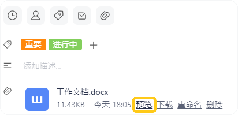 卡片内所有关键操作(包括:删除/归档/移动该卡片,以及完善该卡片细节时所进行的部分操作)及操作的时间,都会被记录在卡片详情页下方的动态中。