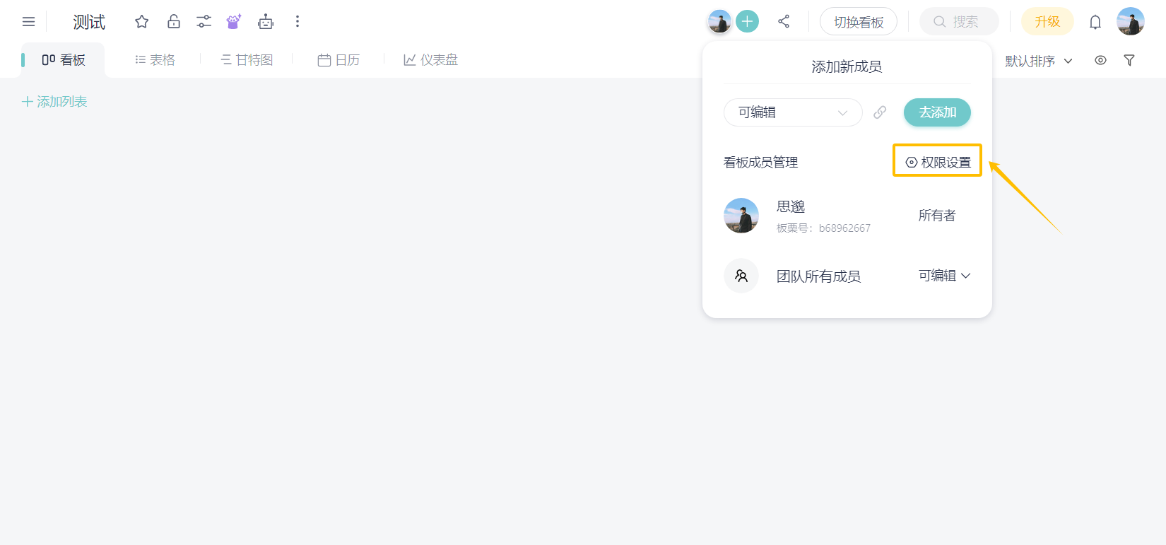 临时成员:没有正式加入团队,但加入了团队中某张看板,仅可看到已加入的看板。